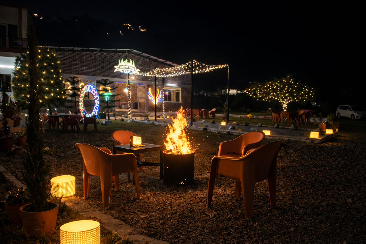 The spacious party lawn at Doon Forest Nest is designed to host celebrations of all kinds in a serene, natural environment. Surrounded by greenery and open skies, the lawn offers a refreshing alternative to indoor venues, making every event feel special and memorable.